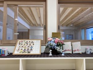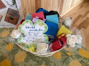 玄関には育休中の先生からの
