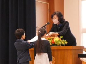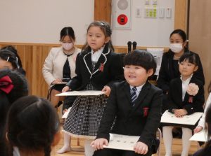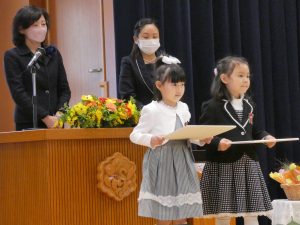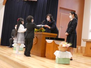 園長先生から修了証書をうけとり