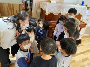 年長児一人ひとりの名前を先生に聞きながら