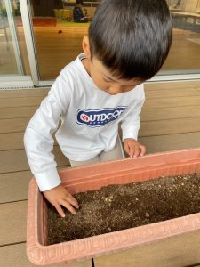 種を寝かせ、優しく土をかぶせました✨
