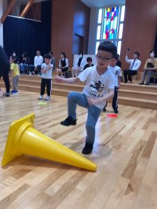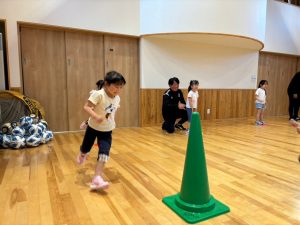 続いて、三角コーンの倒しっこゲームです!