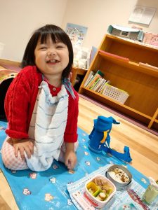 ママが作ってくれたのー🎵お弁当美味しいね!