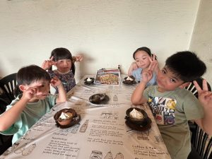 たくさん遊んで、おなかペコペコです。