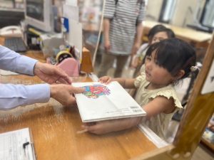 たまごさんも1人ずつ本を手渡しして、