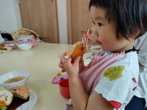 私は大きいニンジン🥕、お口の中に入ってるよ!