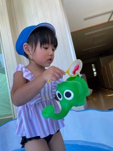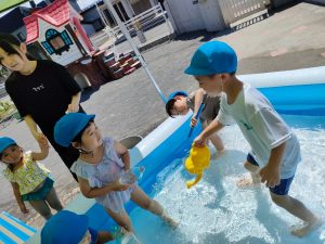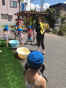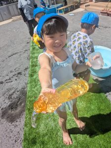 「みずあそびはおもしろい~」