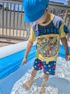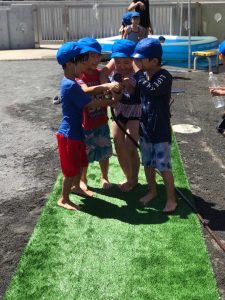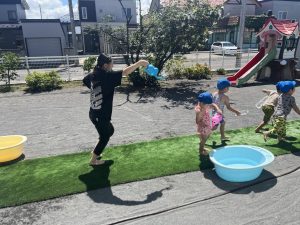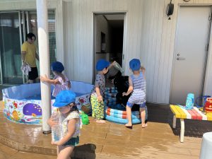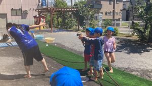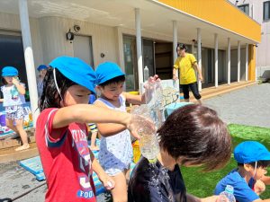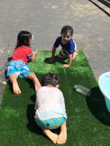 おひさまの下での水あそびは