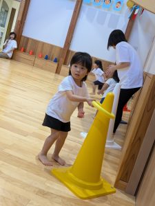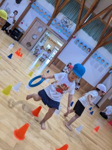 コーンの間をくぐったり