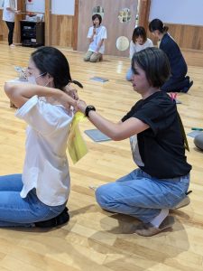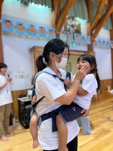 お母さま同士で背中にペタッ