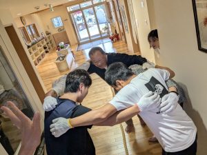 円陣を組んで、いざ勝負!