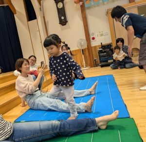 マットのコーナーではお家の方の脚が橋に変身!?