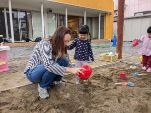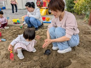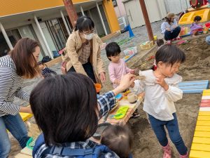 お母さま方も、お砂遊びに精が出ていましたよ!