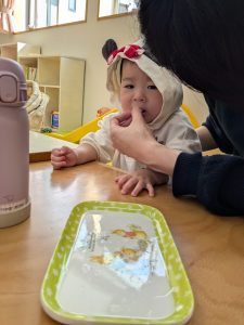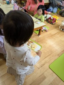おやつタイム、自分で運べるかな?