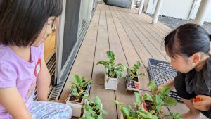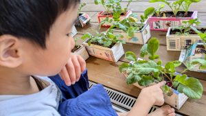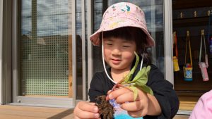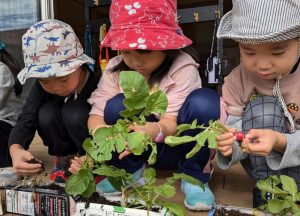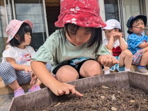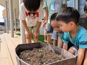 小さな種を見つめる子どもたちが!