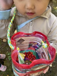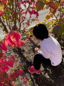 お休みしたお友だちは、園庭で落ち葉拾い🍂