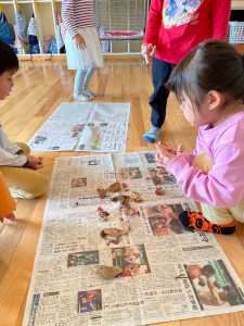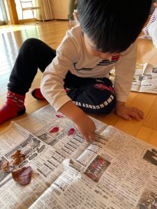お部屋に戻り、新聞紙に並べてみます。