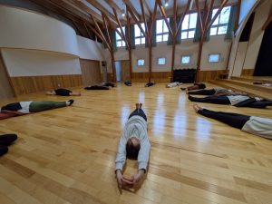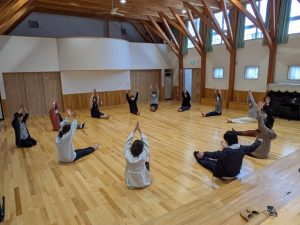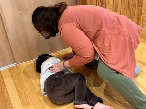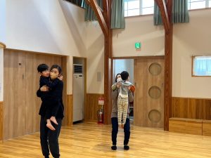 お家の方がホールでストレッチ!