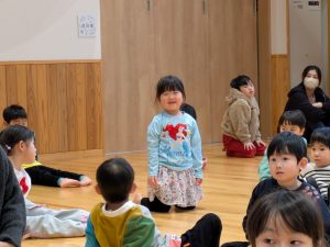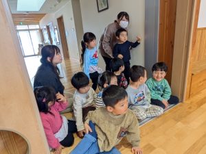 先生や年長児を見ながら...