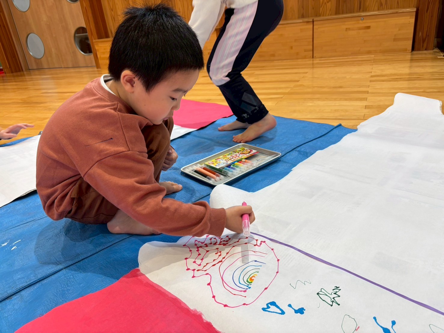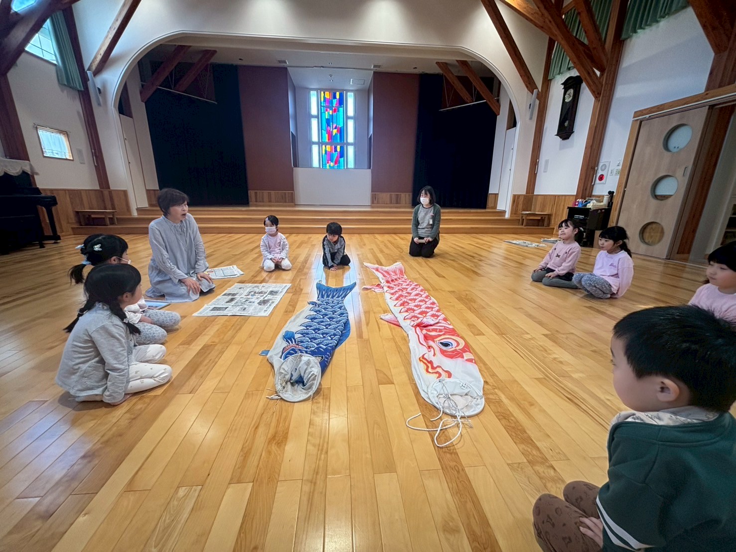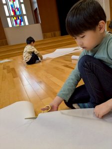 こいのぼり製作に挑戦したこどもたち。