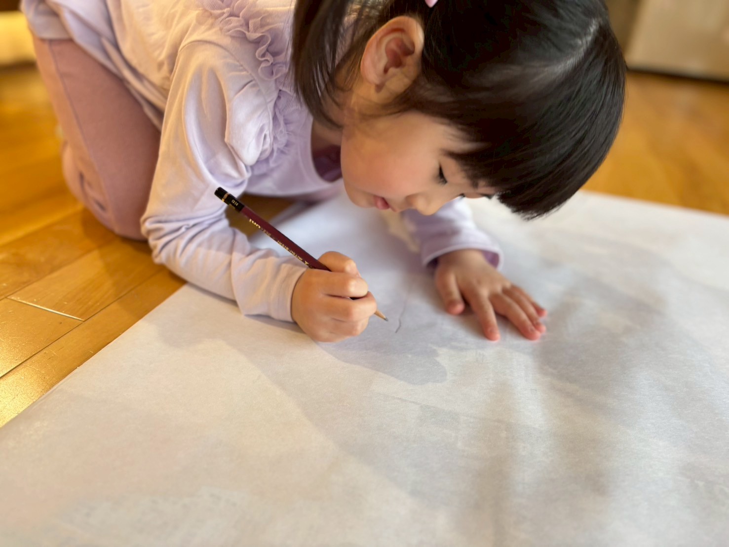 紙を上から重ねて、鉛筆でなぞります