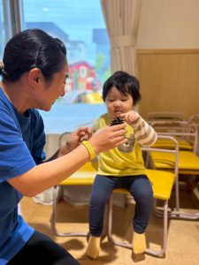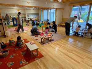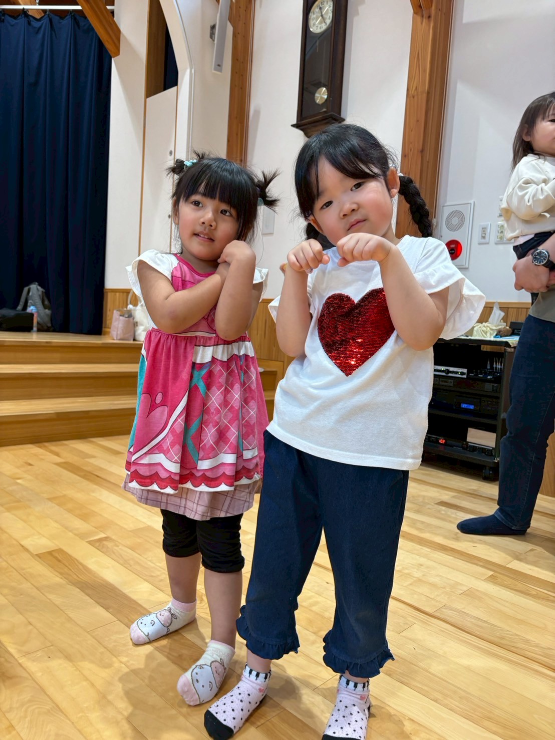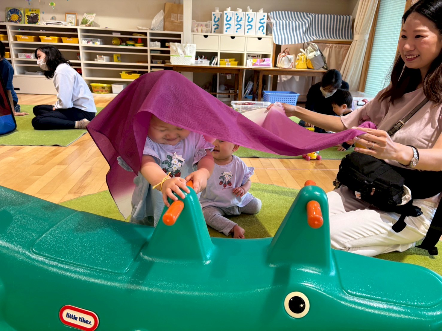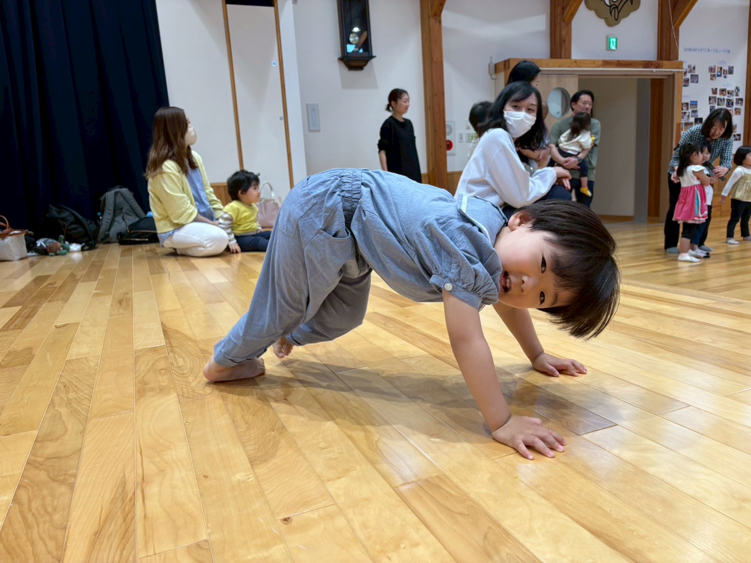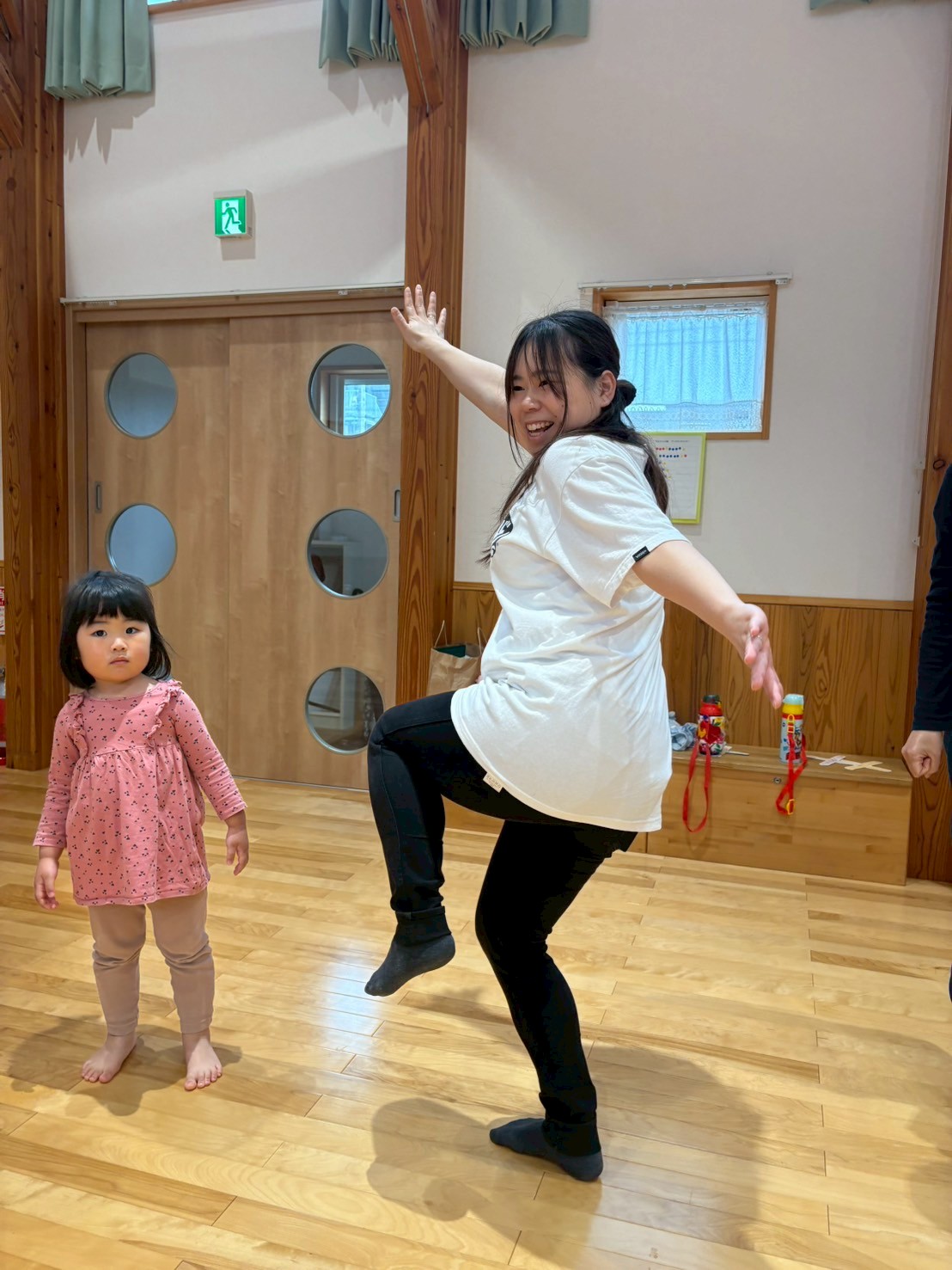 お家の方と手をつないで、“こうえんにいきましょう”のダンス。