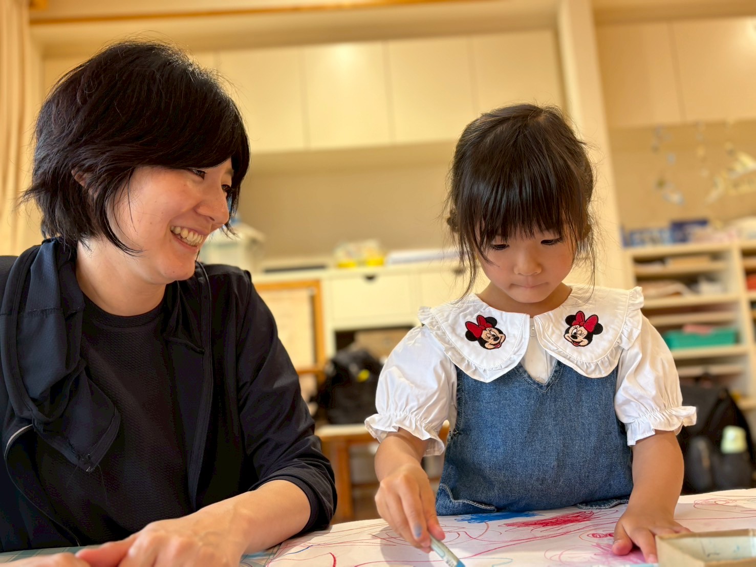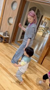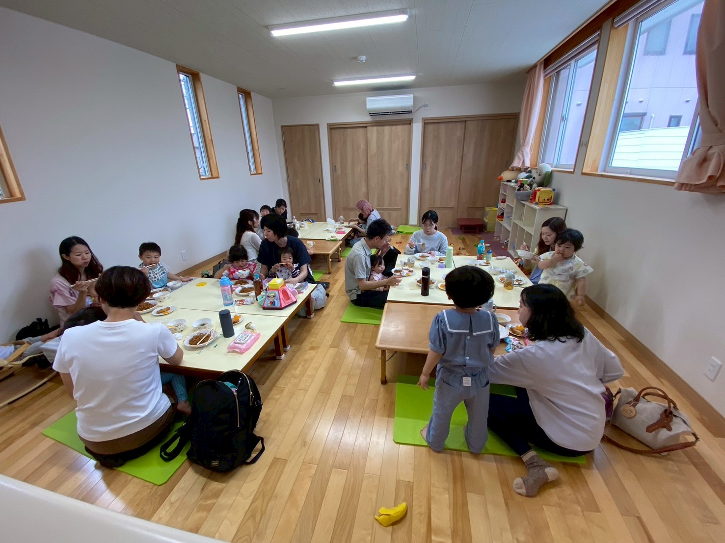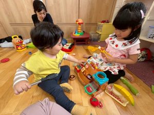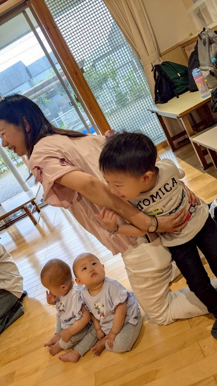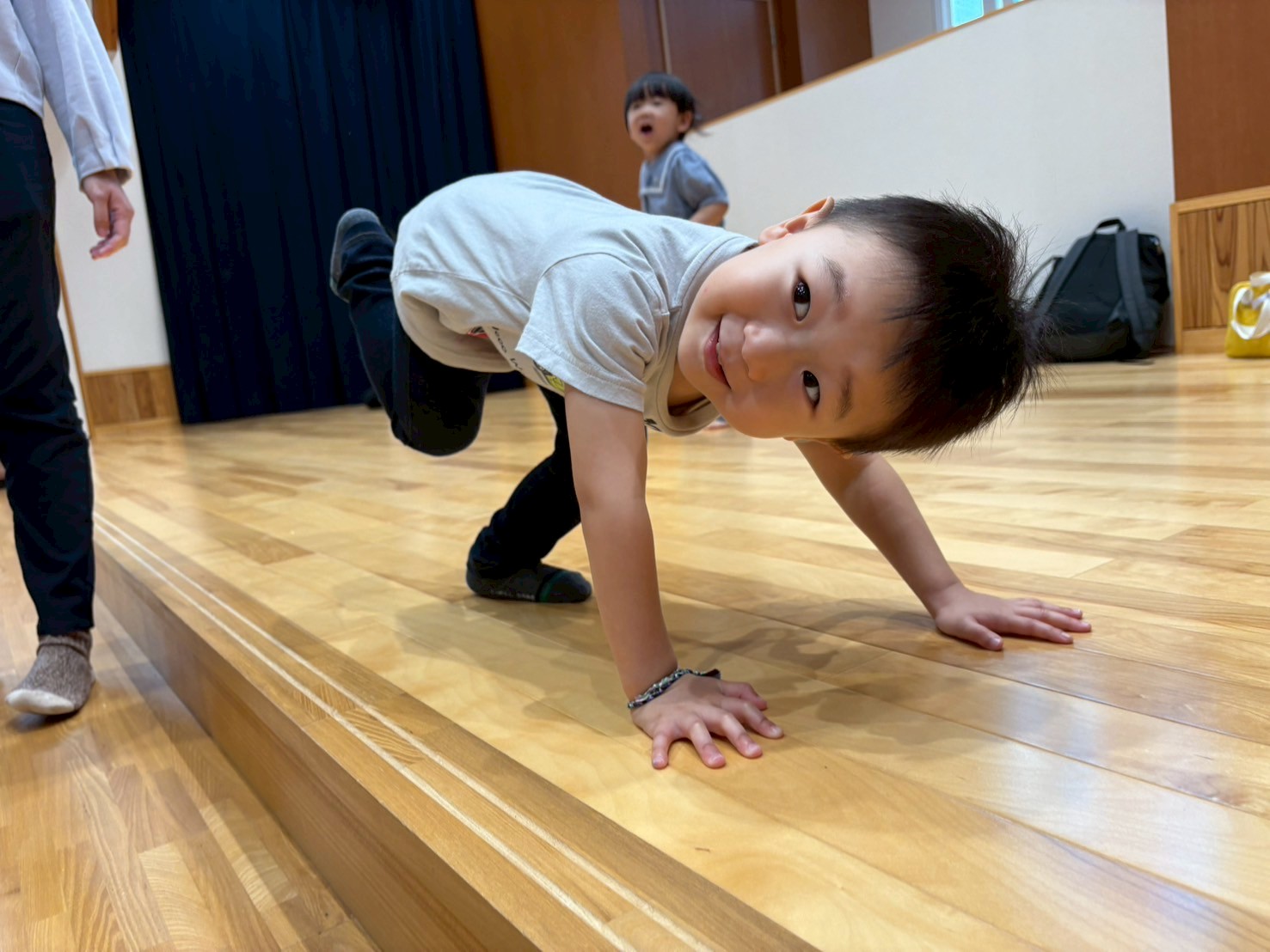 お家の方と手をつないで、“こうえんにいきましょう”のダンス。