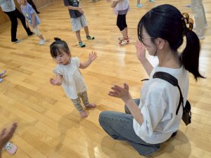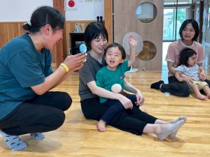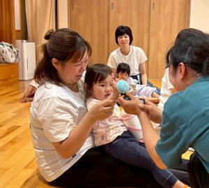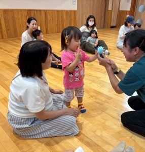 ふれあい遊びはホールで!ママのお舟に揺られた後は・・・
