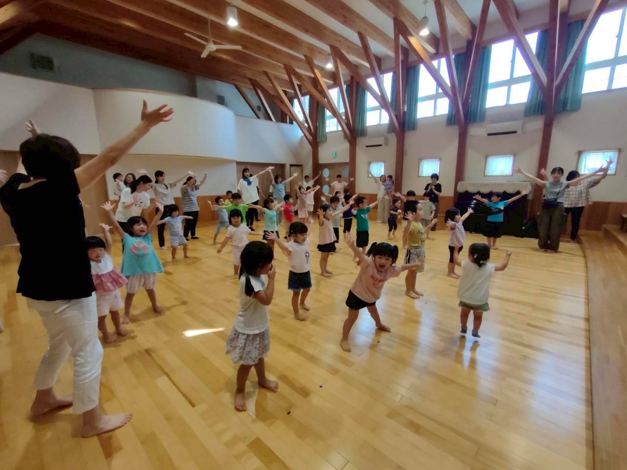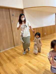 ホールではお兄さん・お姉さんと一緒に体操をしましたよ。