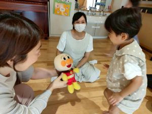 お返事タイムは…アンパンマンにタッチ✋