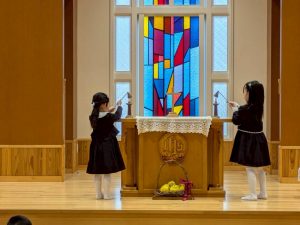 『2匹の魚と5つのパン』の紙芝居を見ました。