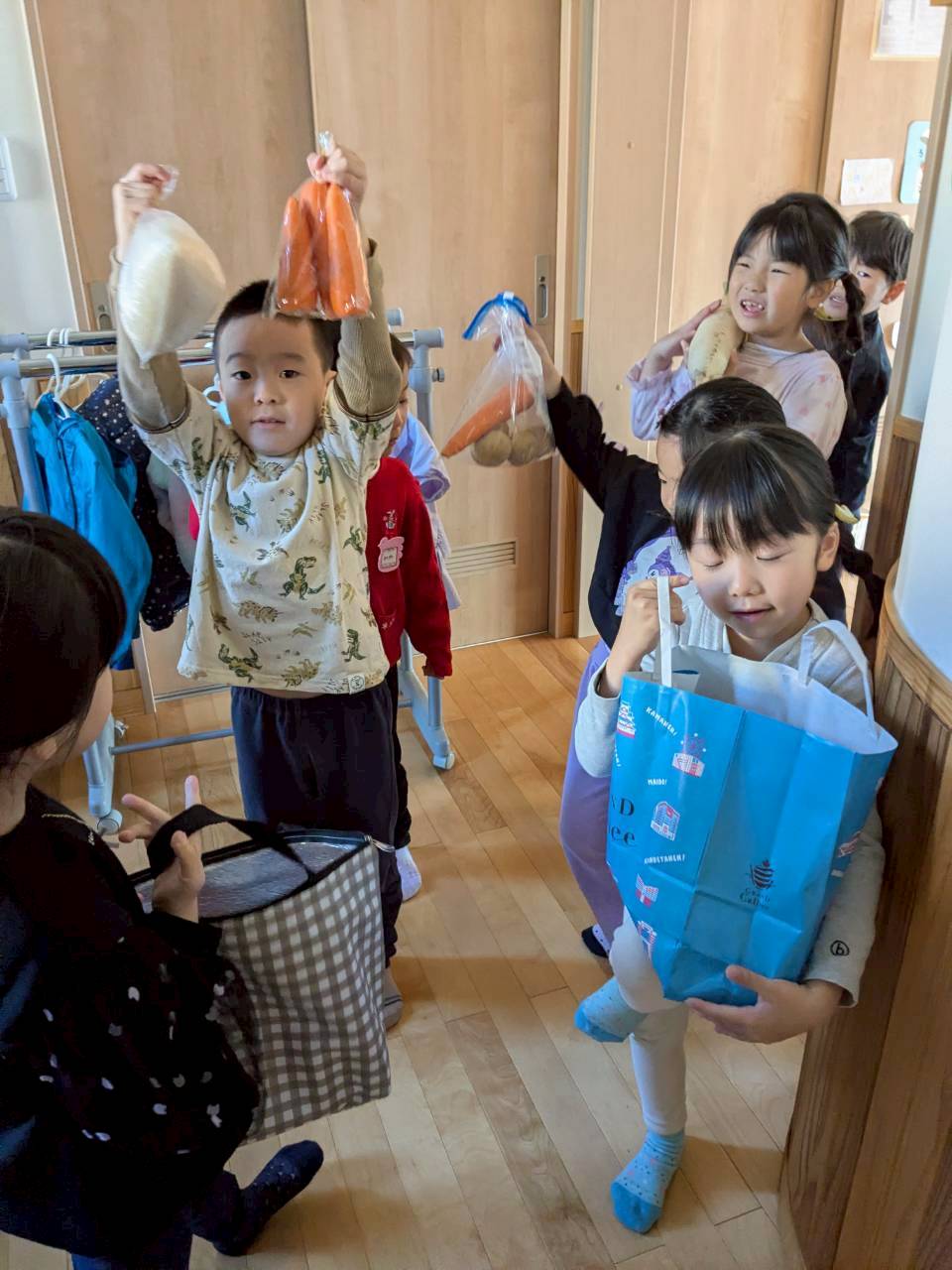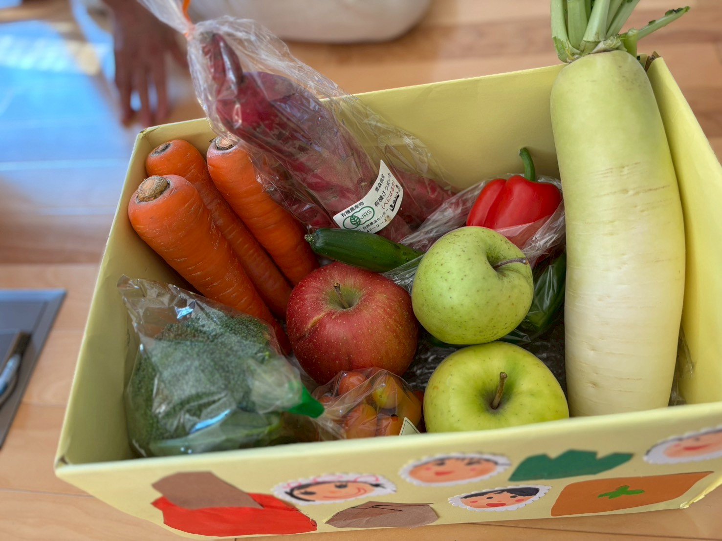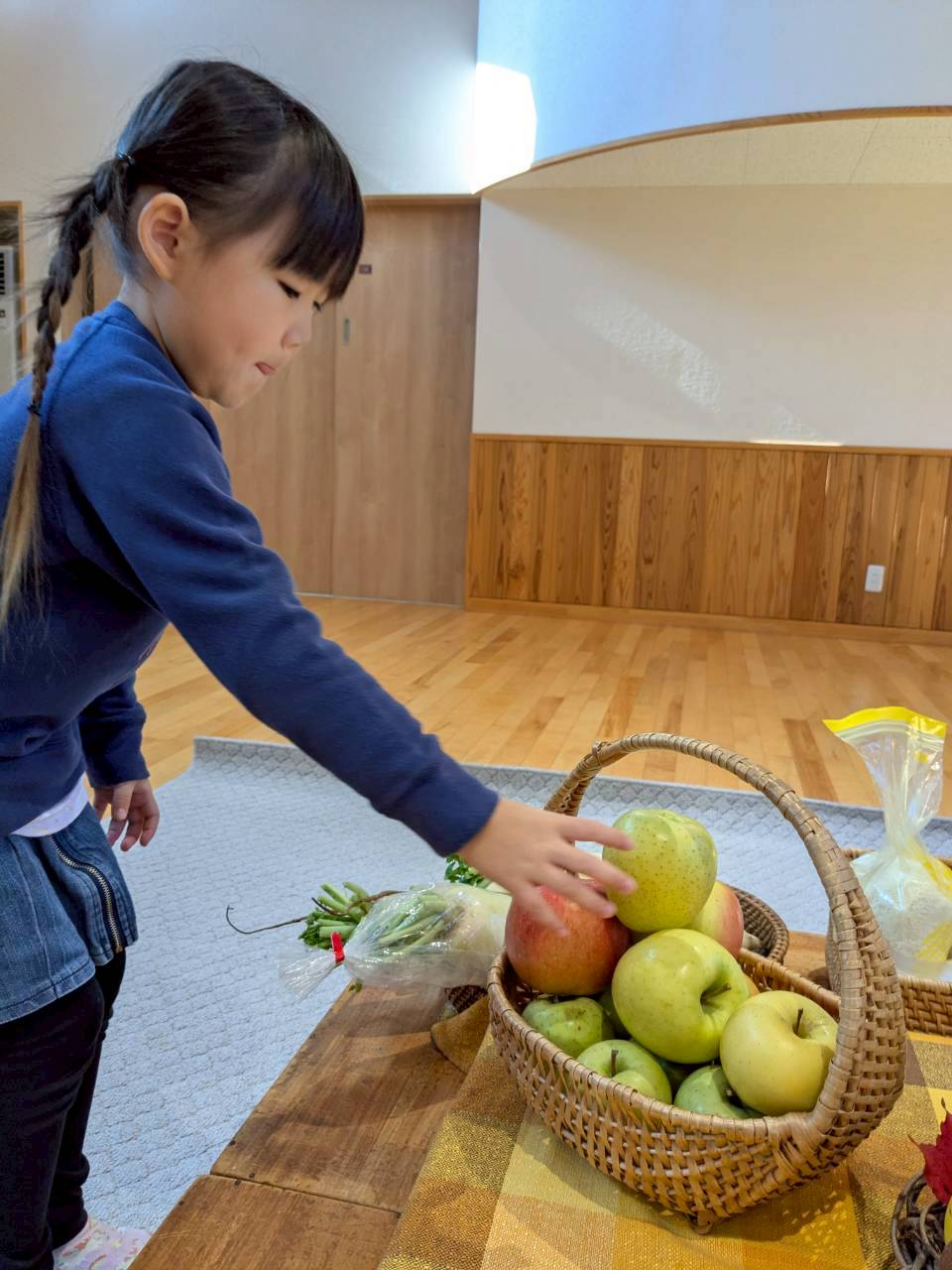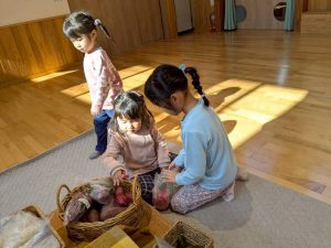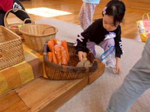 早速、お家から持ってきたお野菜や果物を運びます。