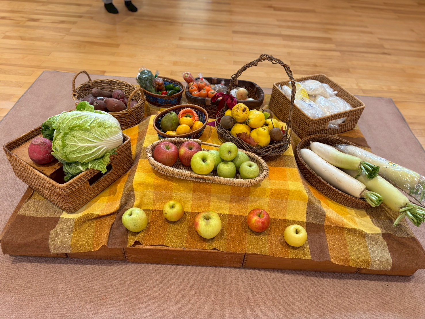 集まった野菜や果物の