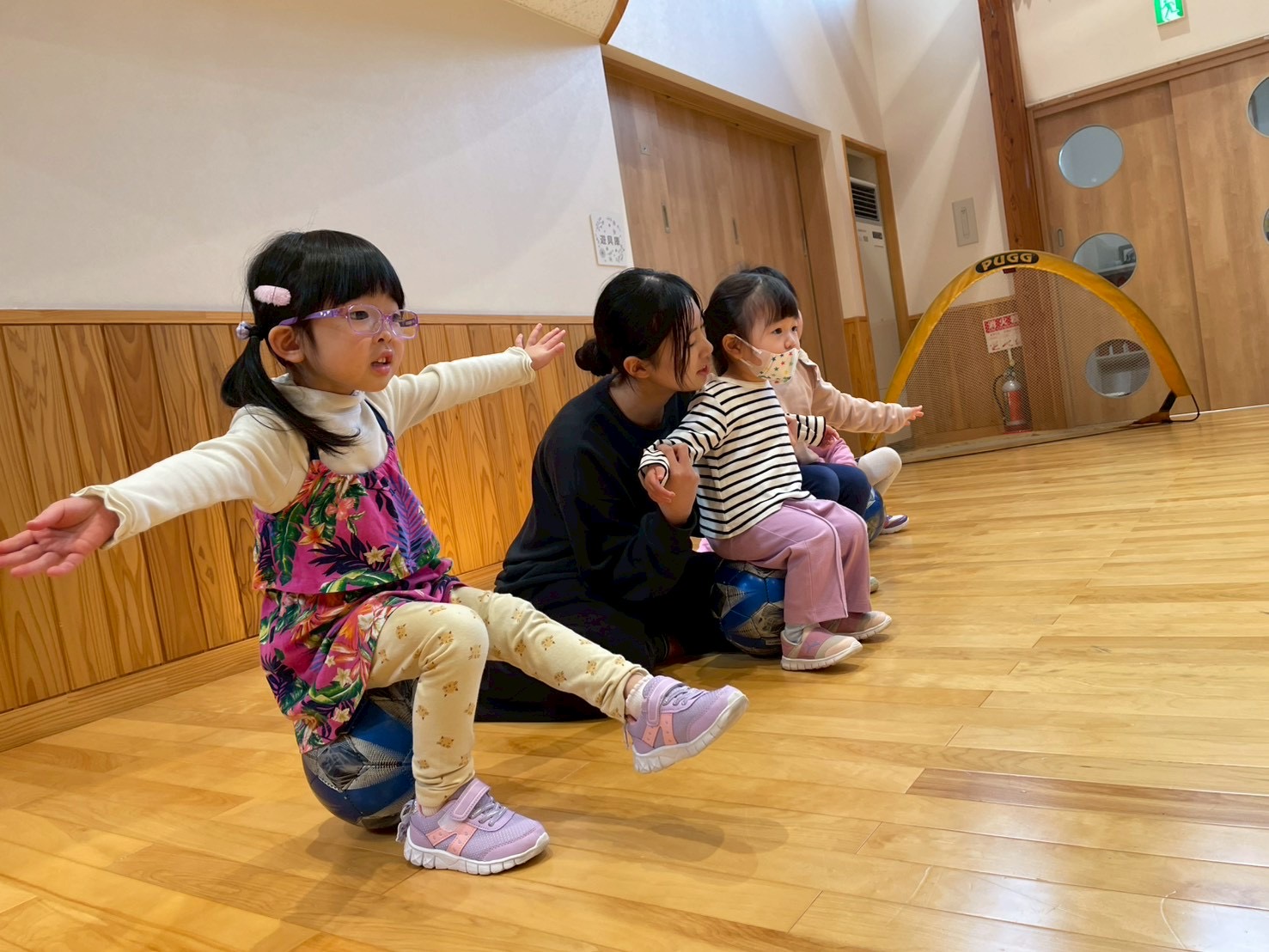 ボールに座って…バランス~!