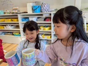 おひさま組は、卒園記念に作ったマグカップで