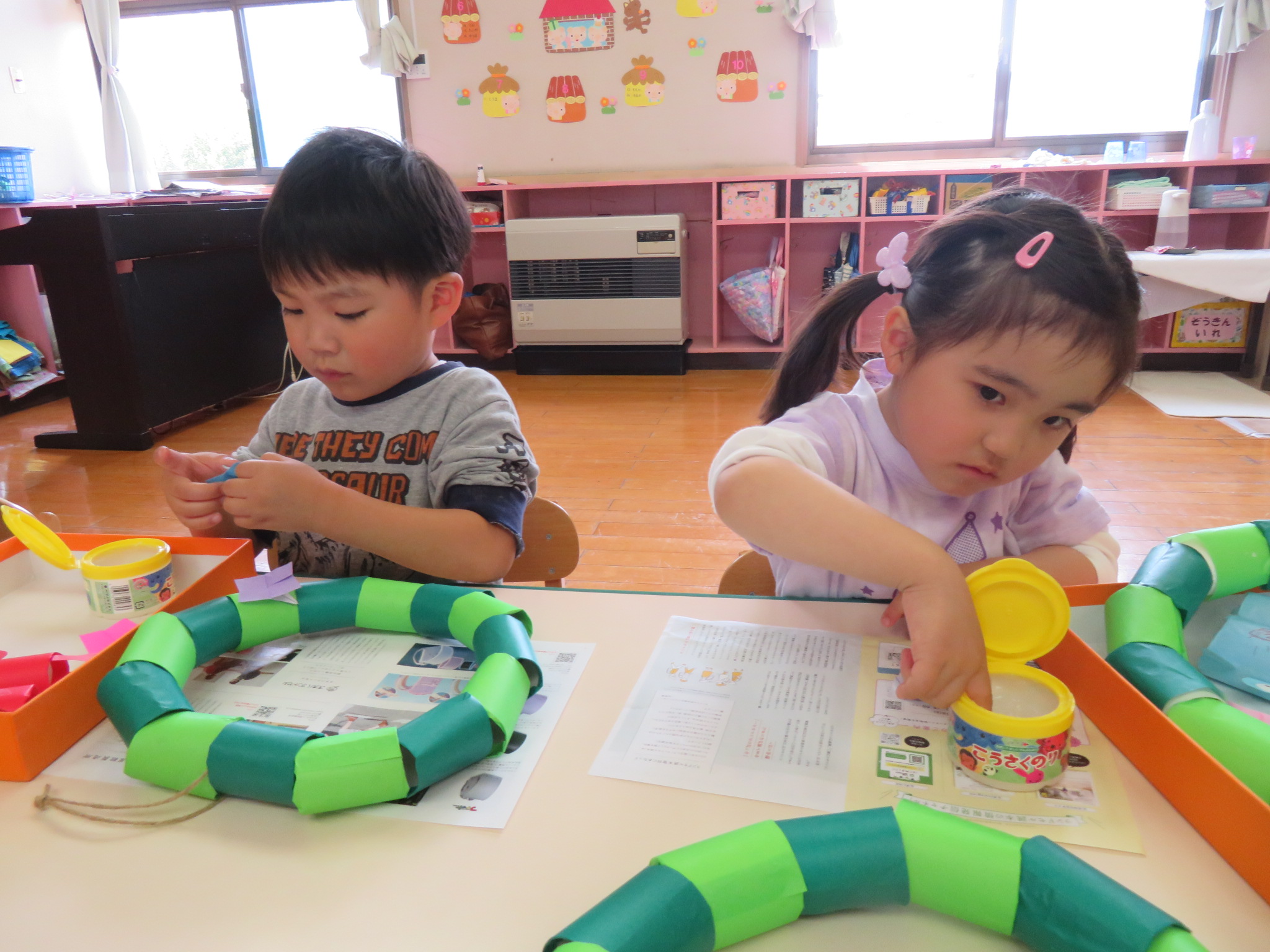 折り紙を巻いていたトイレットペーパーの芯は、リースに変身!