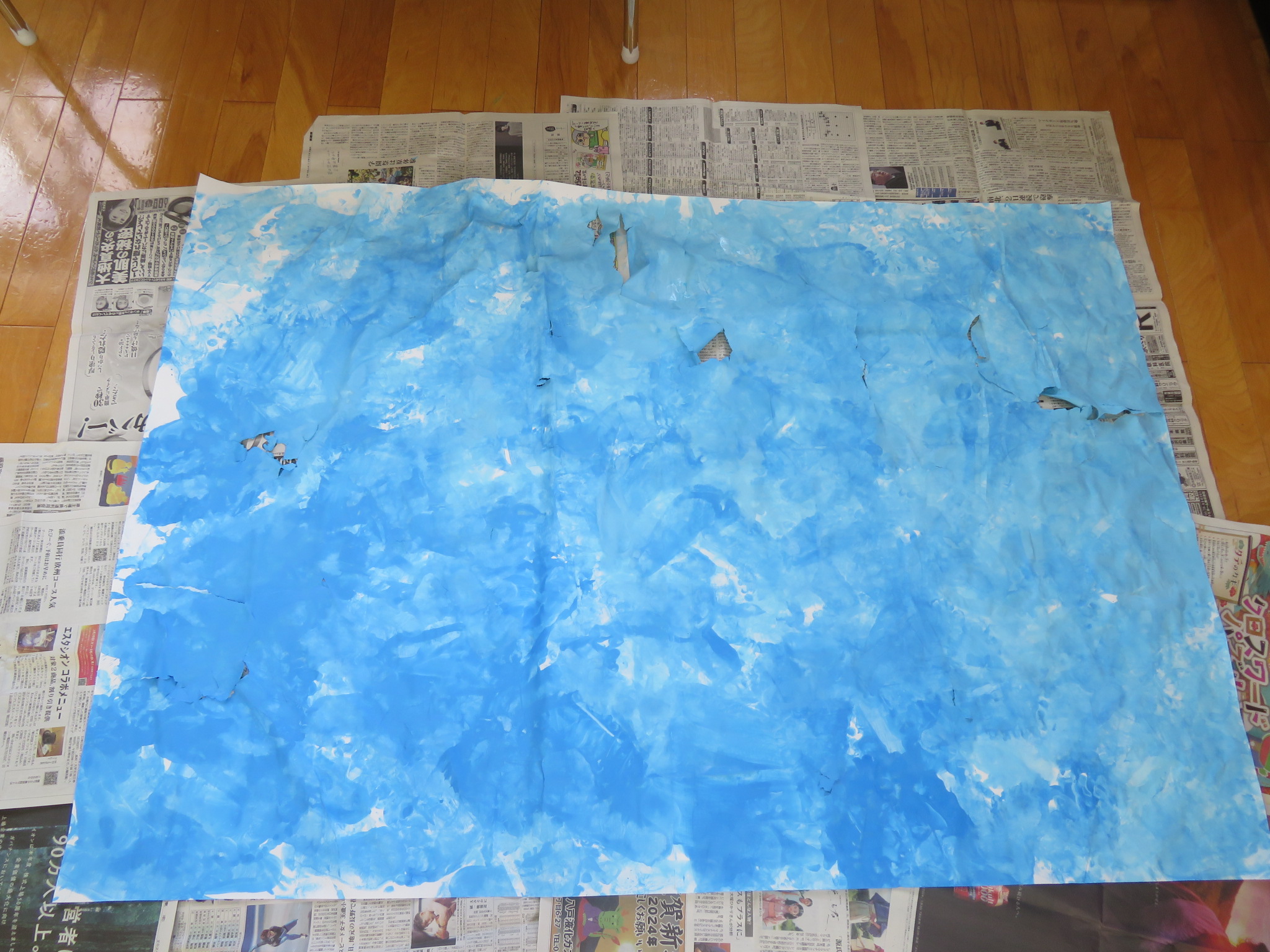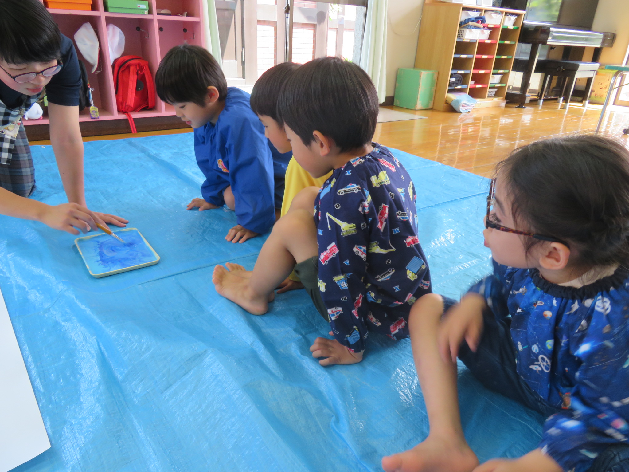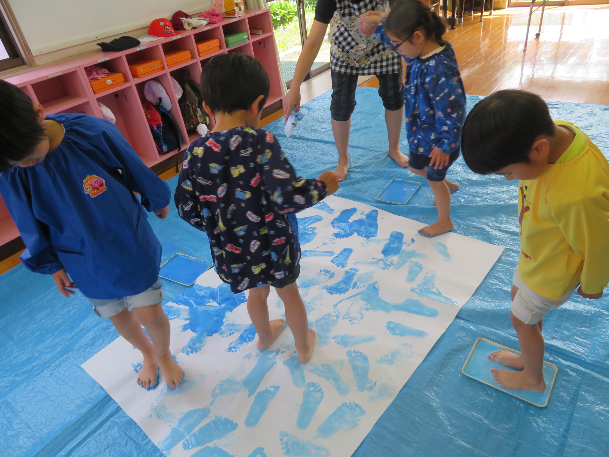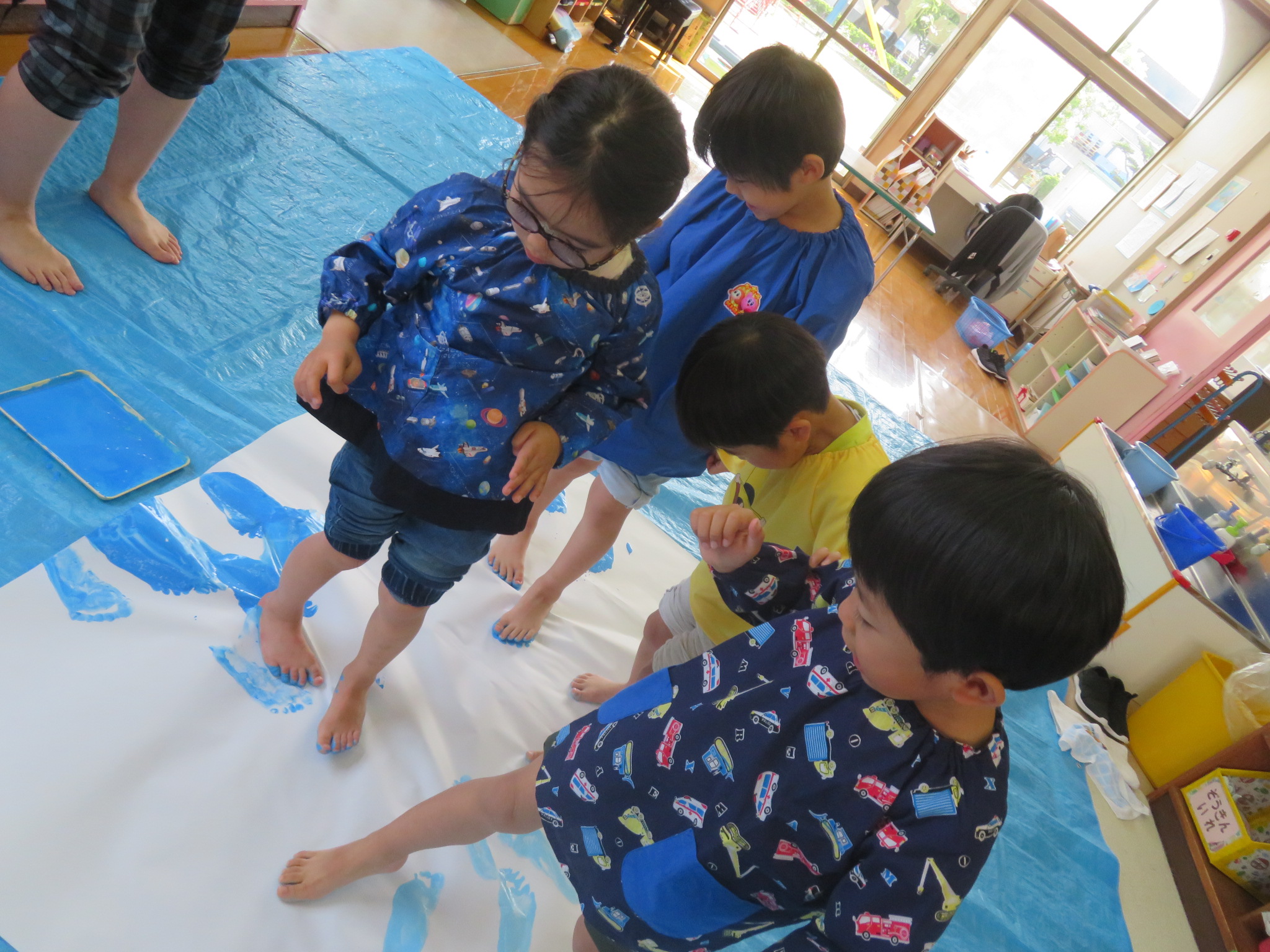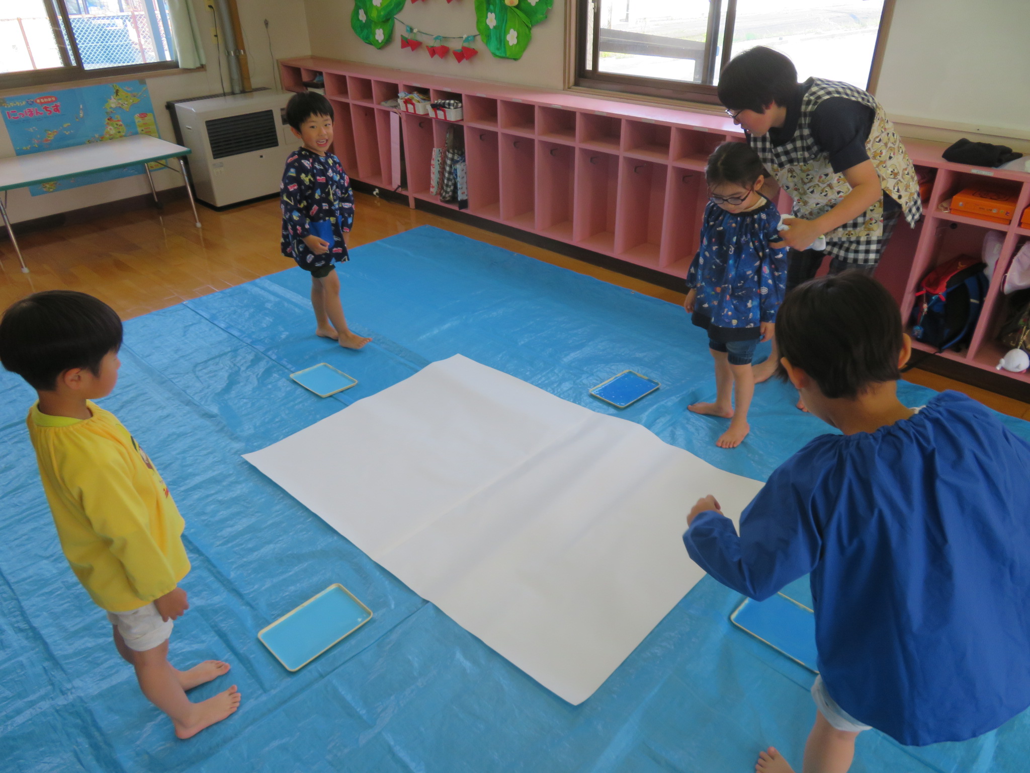 大きな画用紙の上をペタペタ歩くの、おもしろ~い!