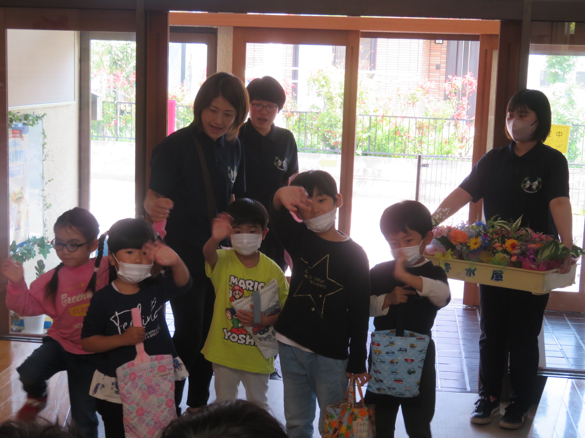 みんなでご挨拶をしたら、いよいよカードとお花をプレゼント!