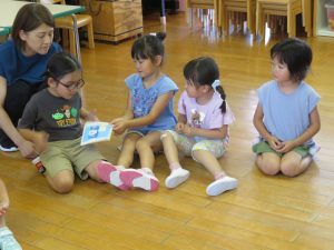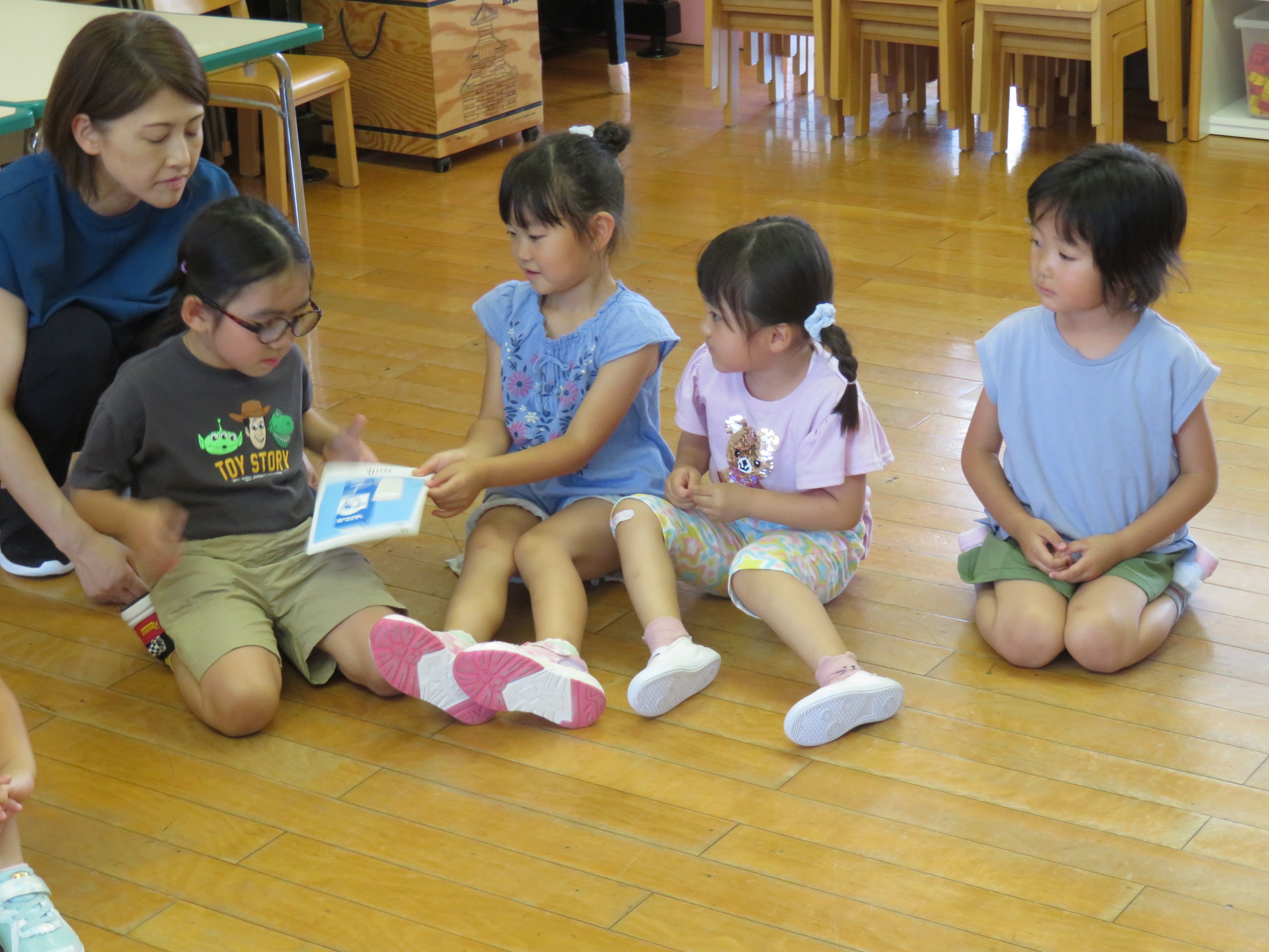 お隣りのお友だちにも、順番に教えてあげようね!
