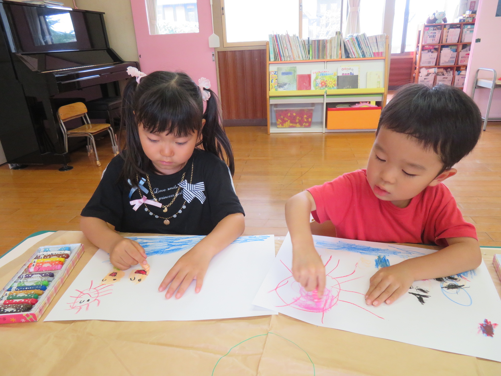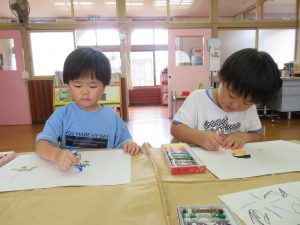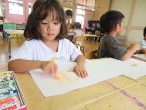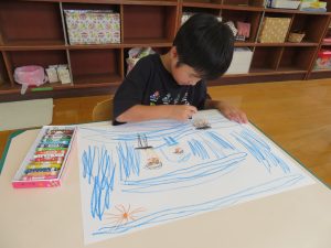 午後は、『夏休みの思い出』をお絵描きしましたよ!