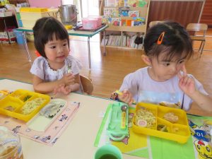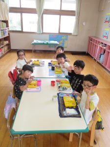 たくさん遊んだ後は、お給食タイム!