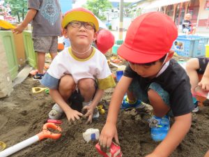 涼しいお砂場は、大人気!