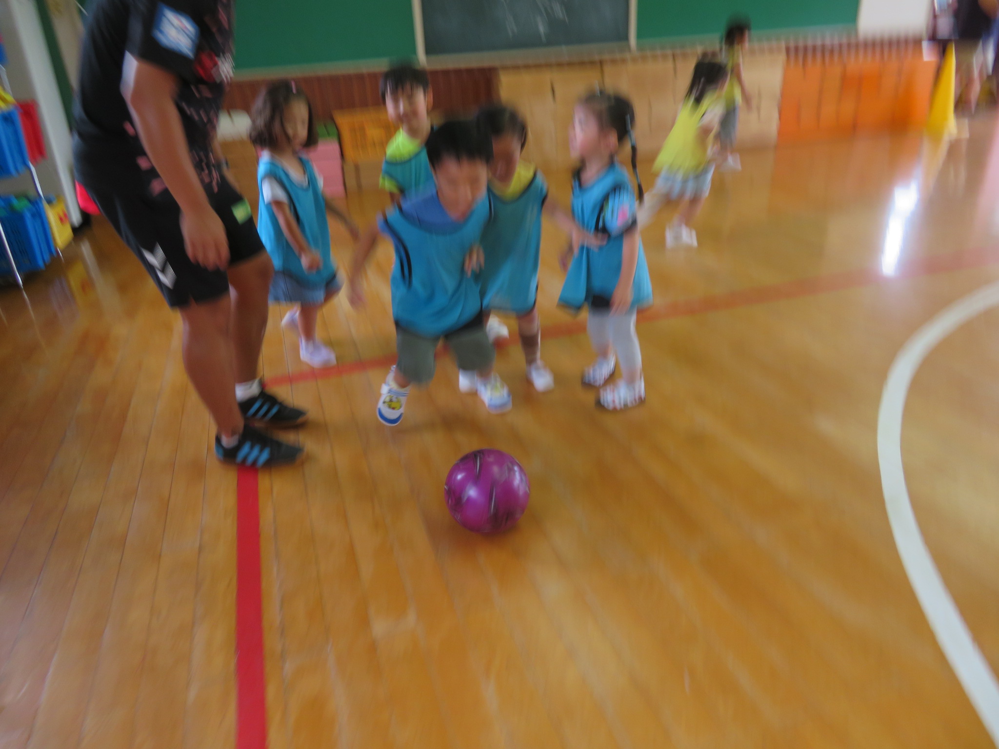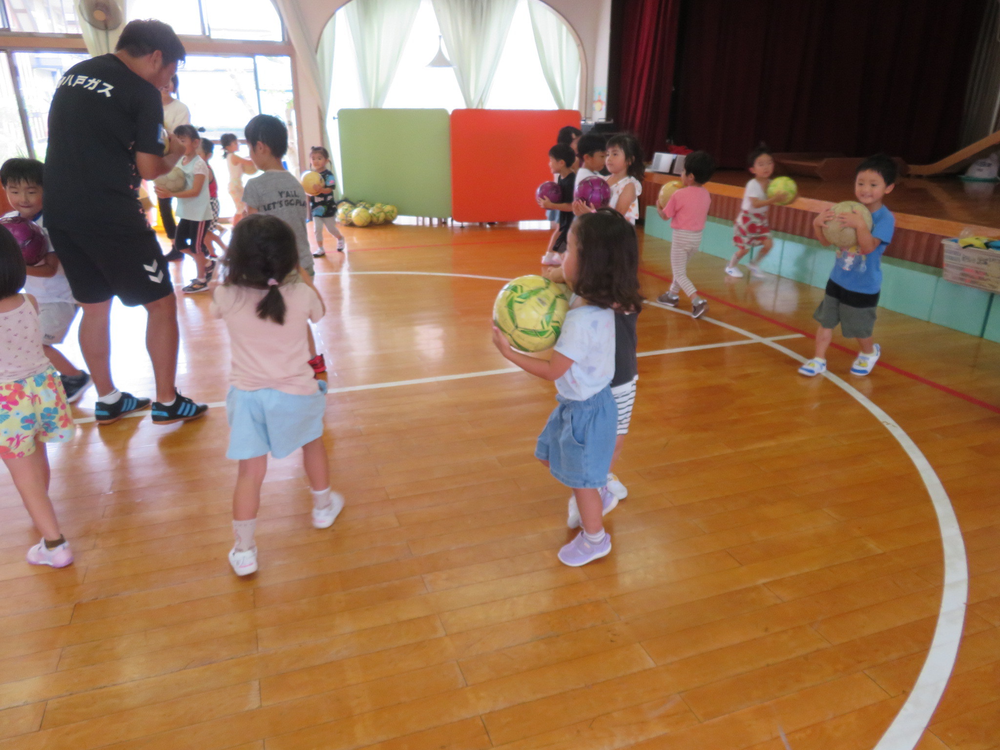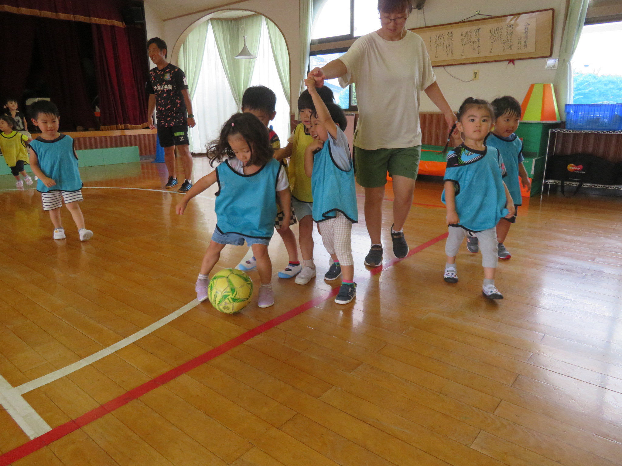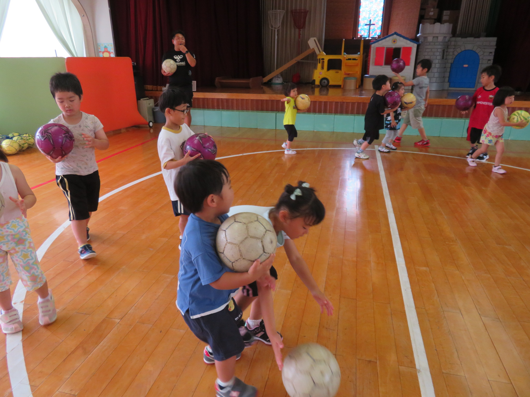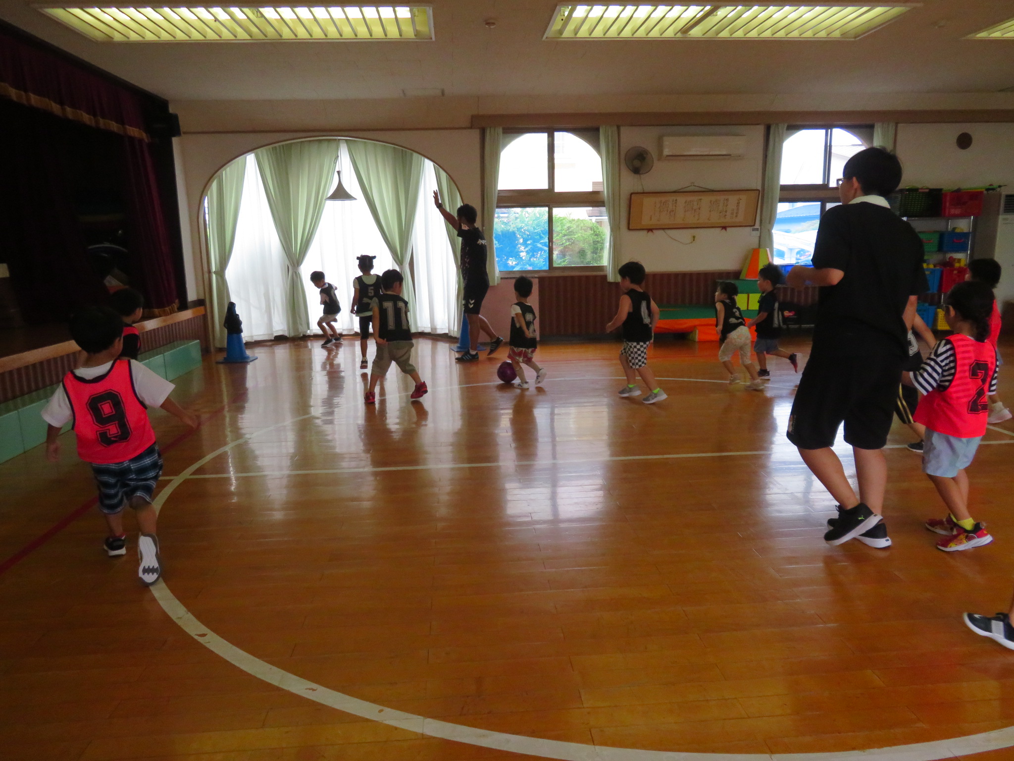ということで、サッカー教室は、ホールで行いました!