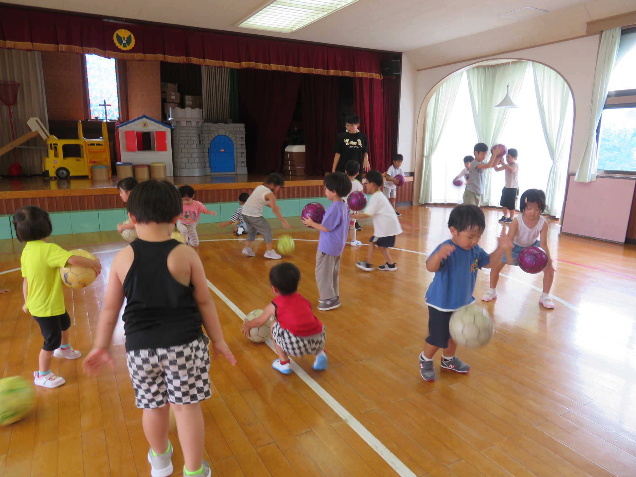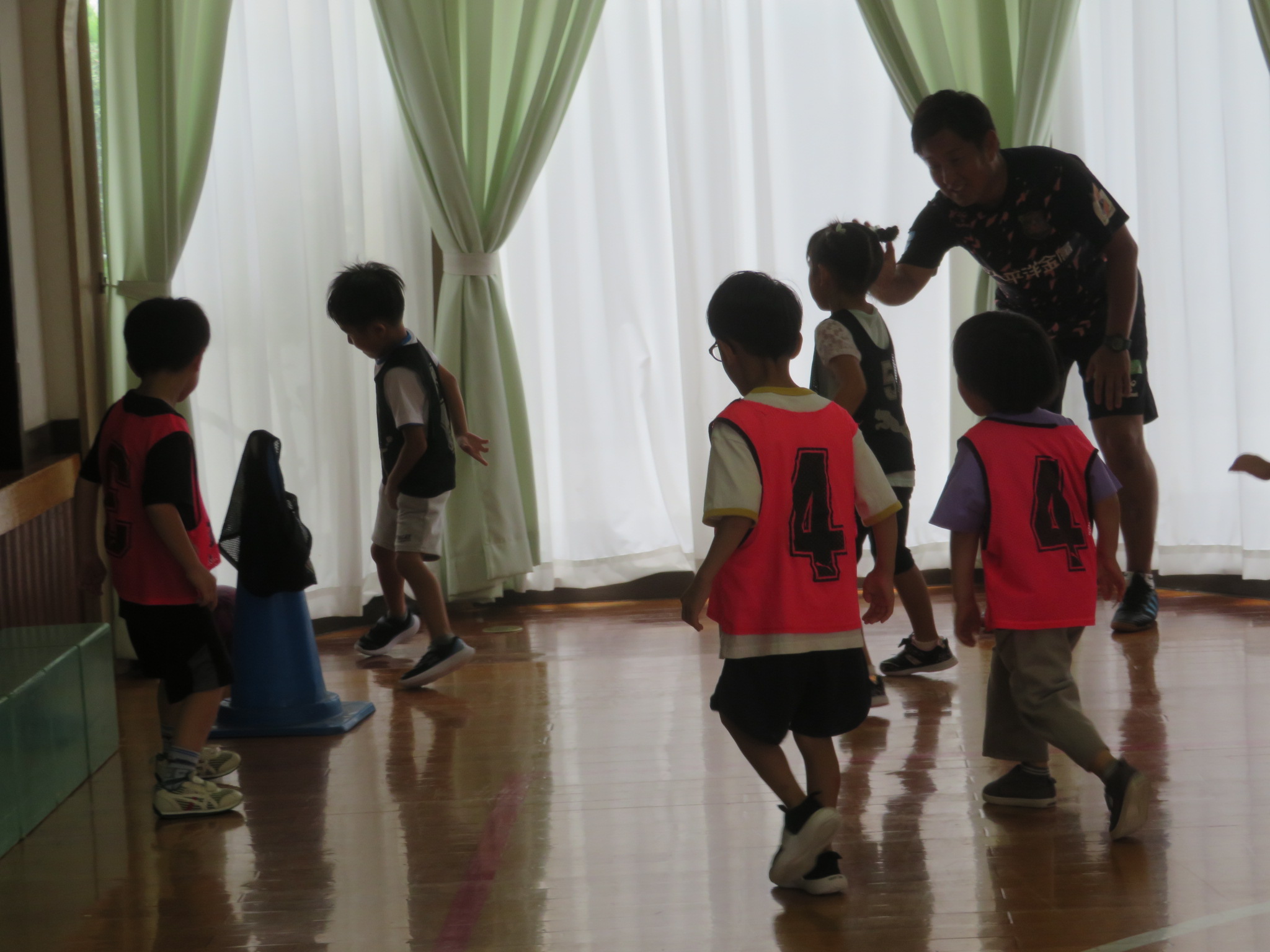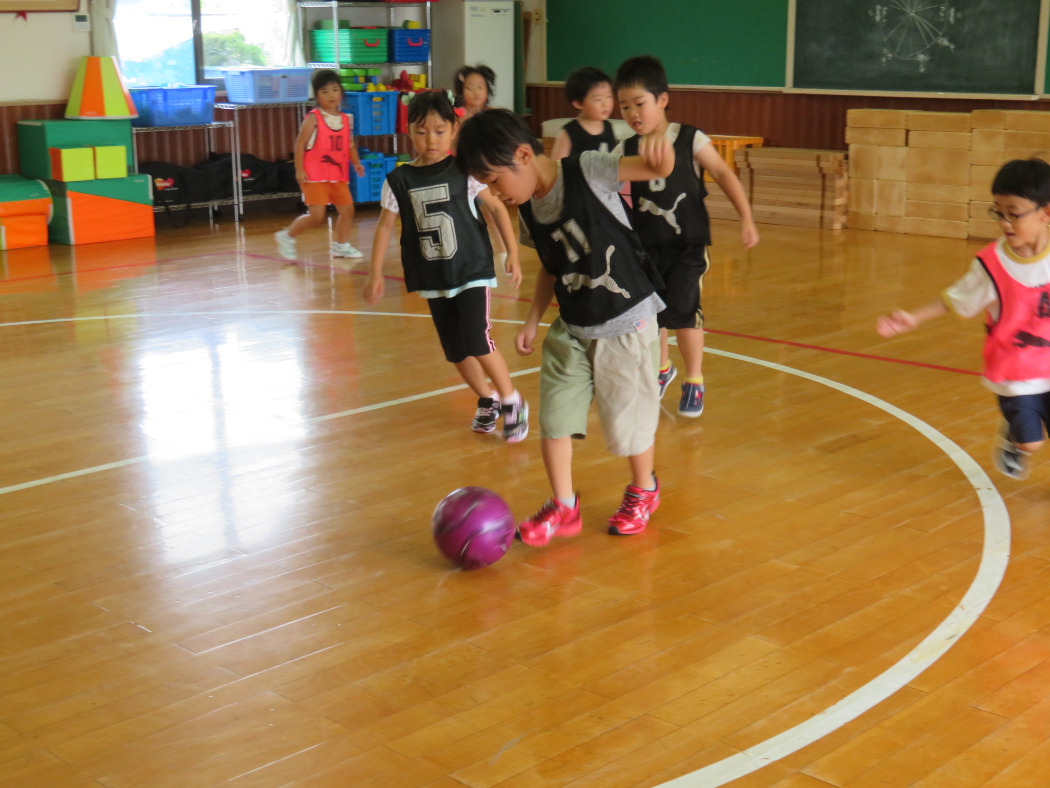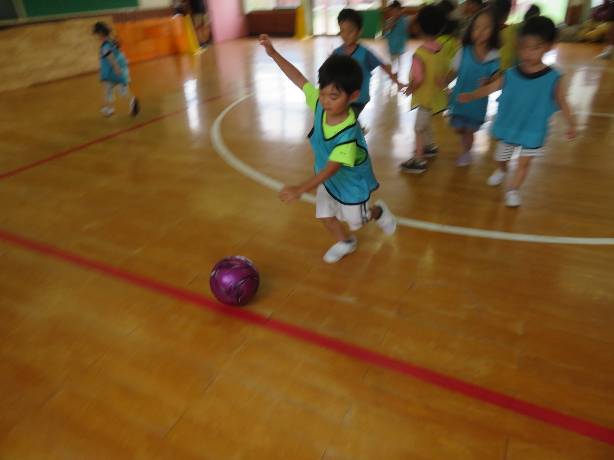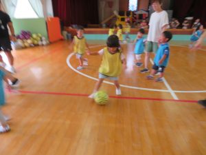 ということで、サッカー教室は、ホールで行いました!