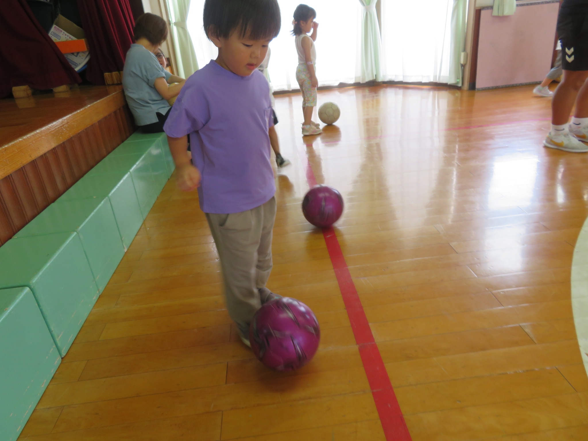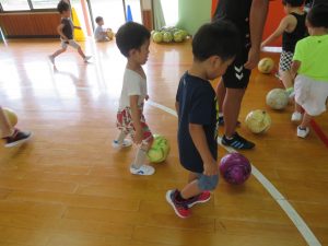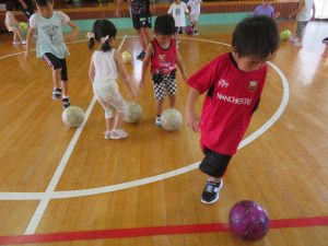 おててを使わないでボールをキック!