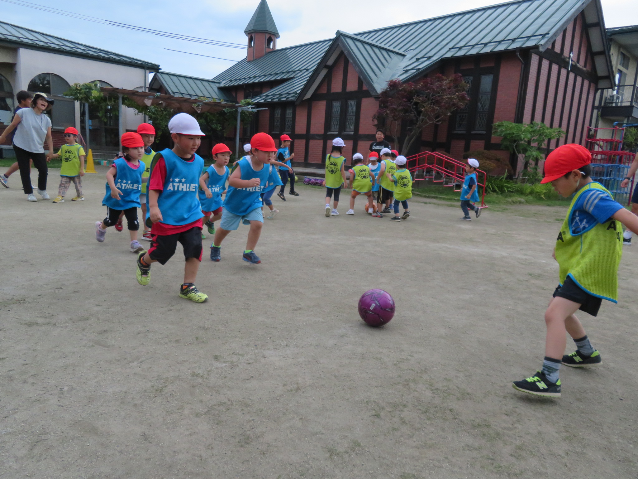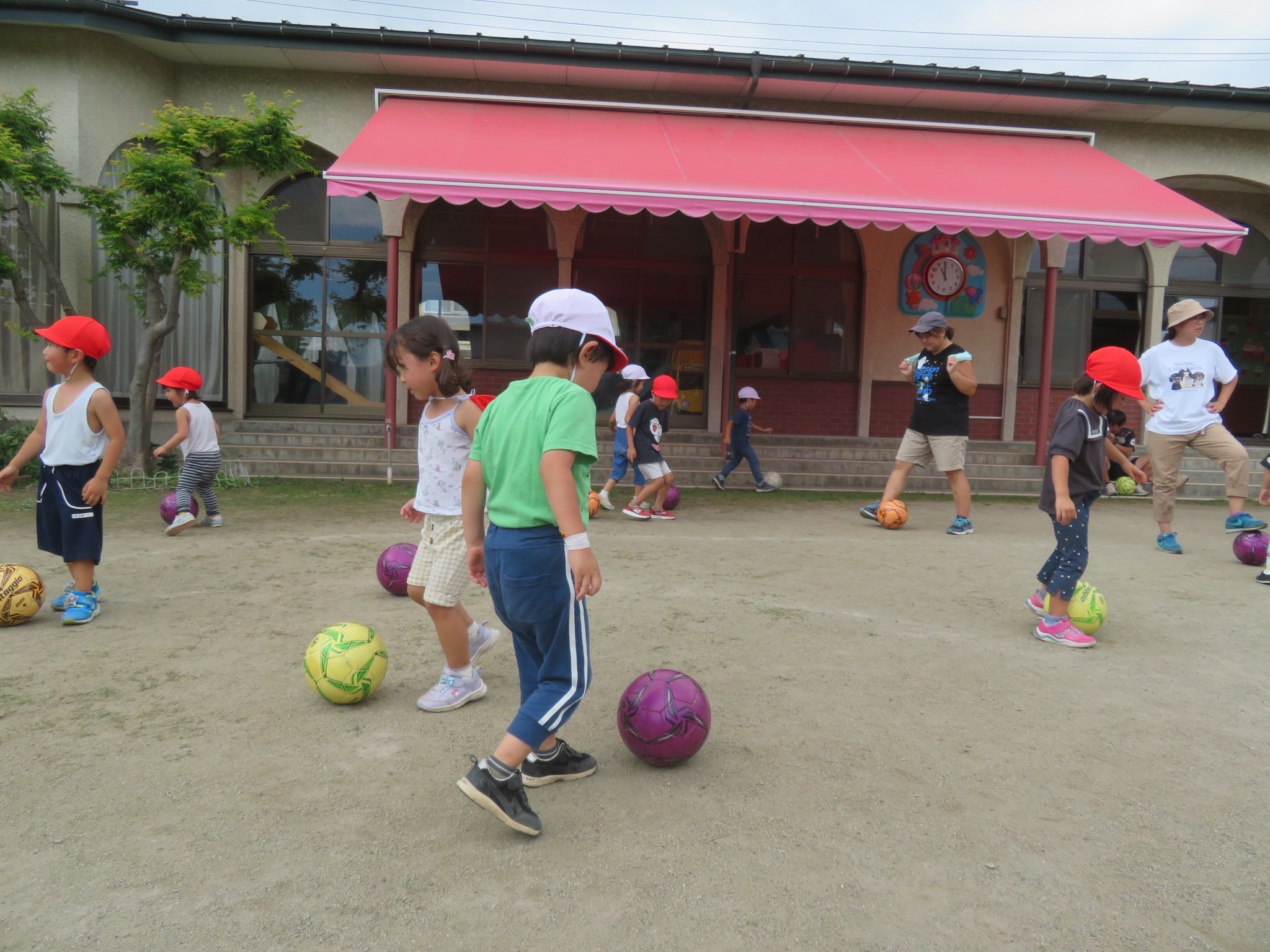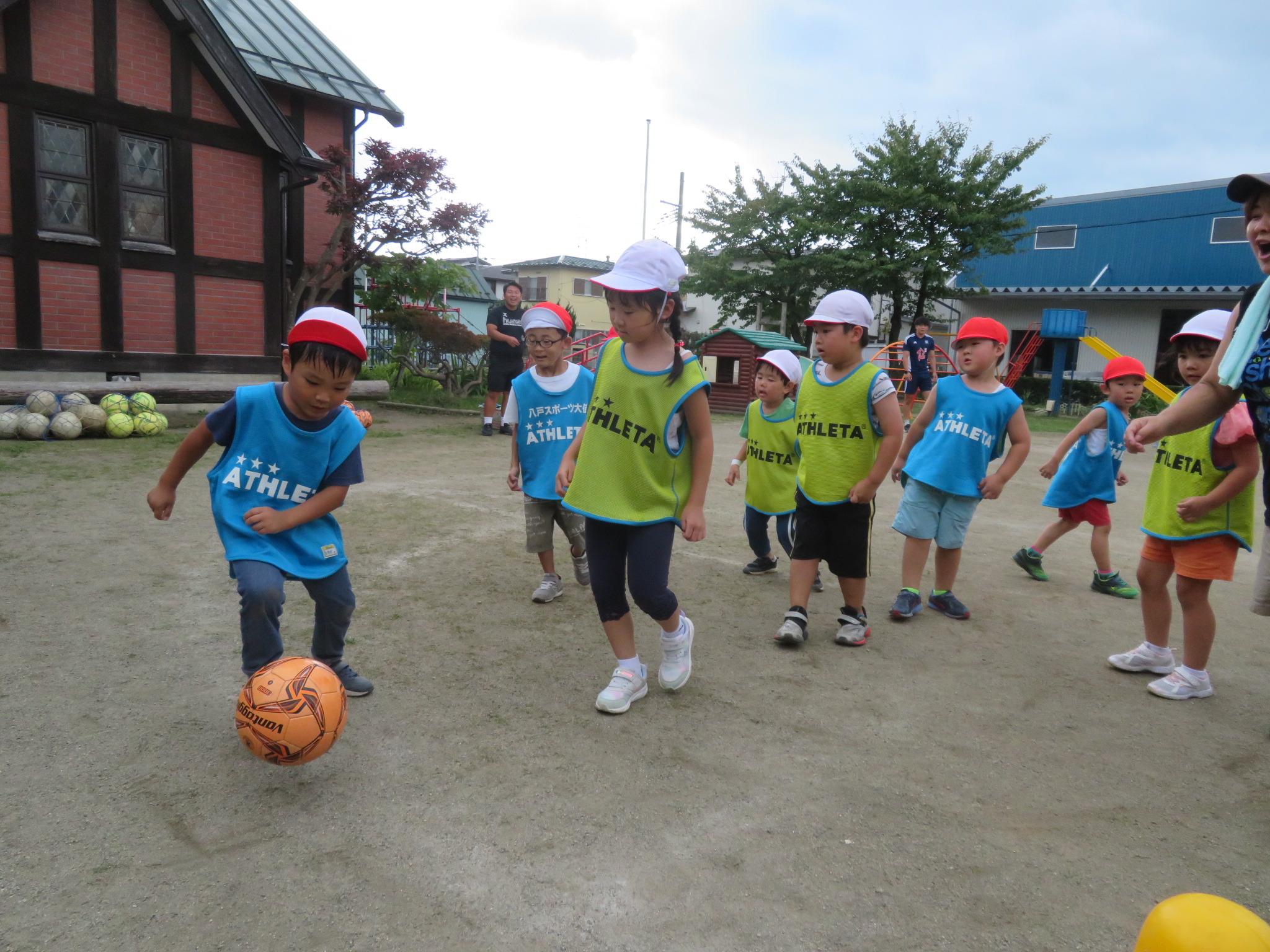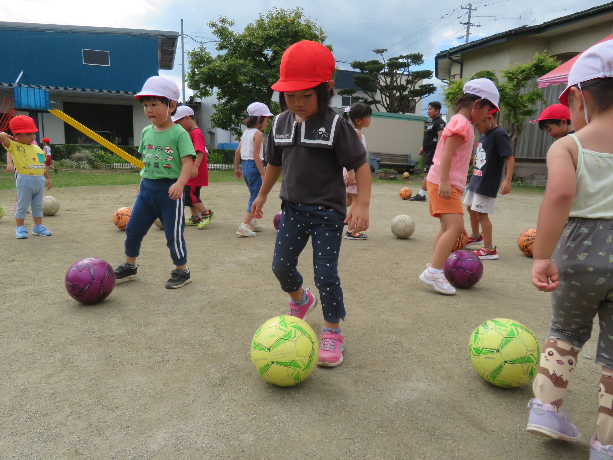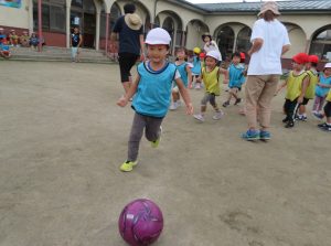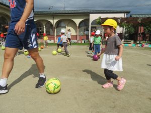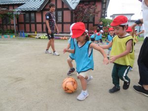 すみれさんにとっては、幼稚園でできる最後のサッカー教室。