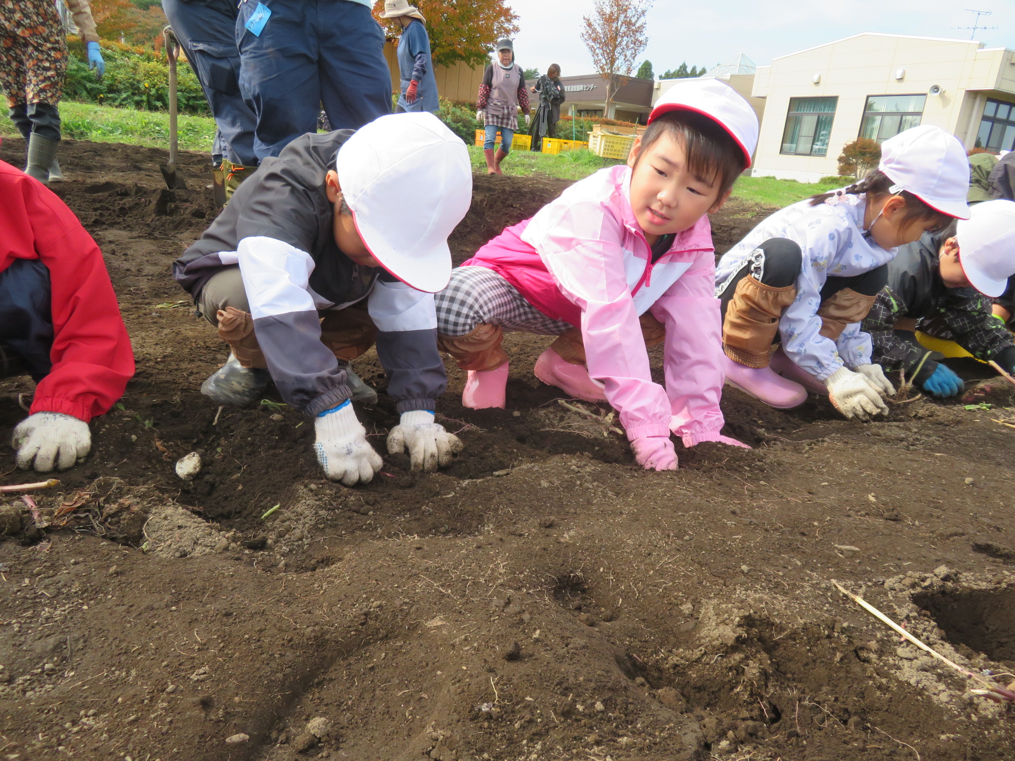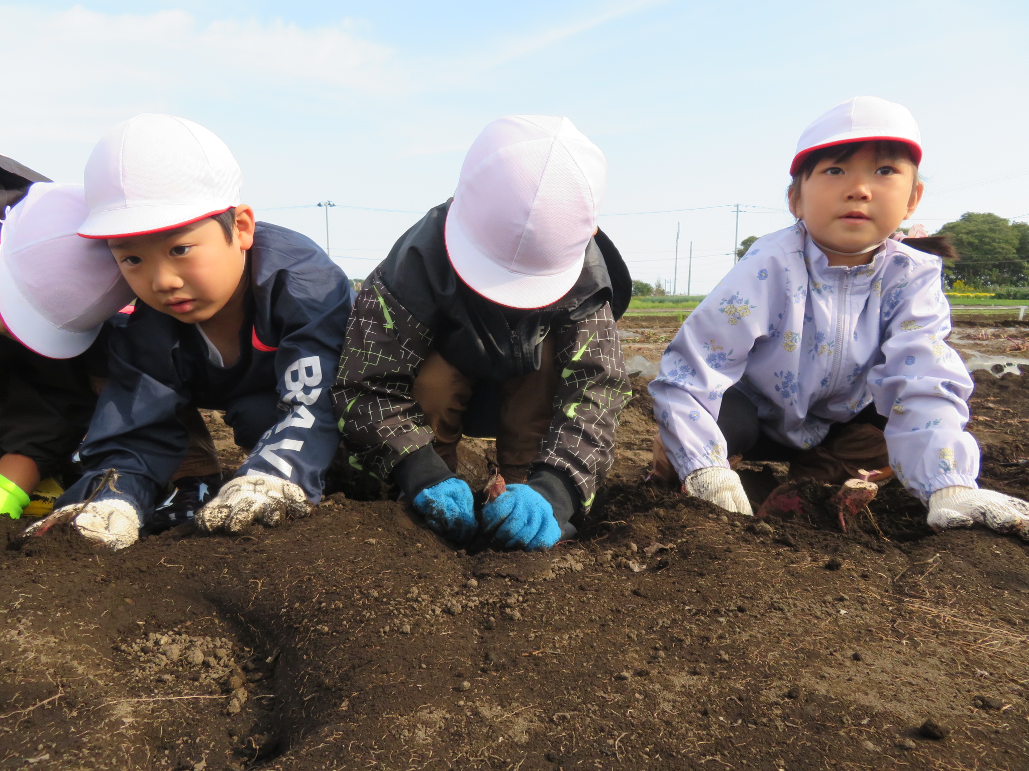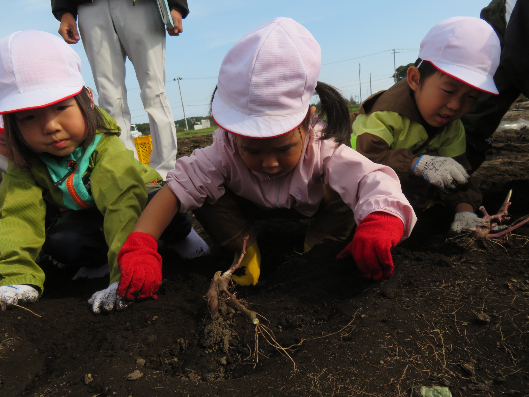 やる気満々の子どもたち!「たくさん掘るぞ!おー!!」