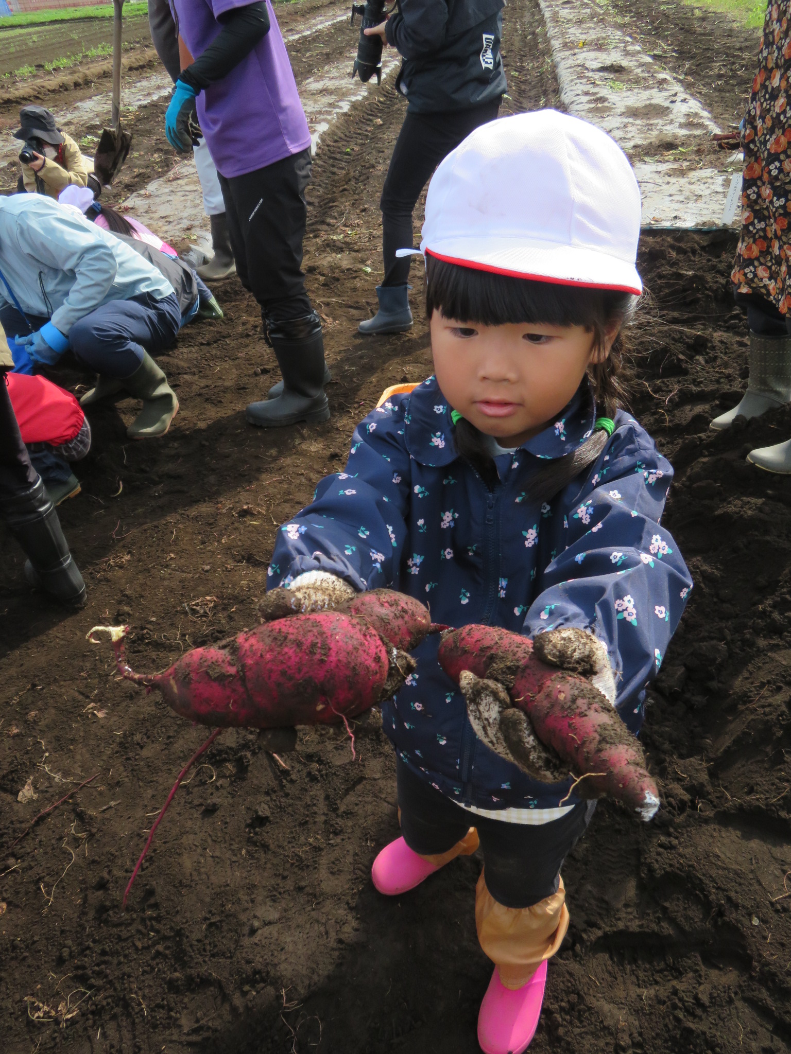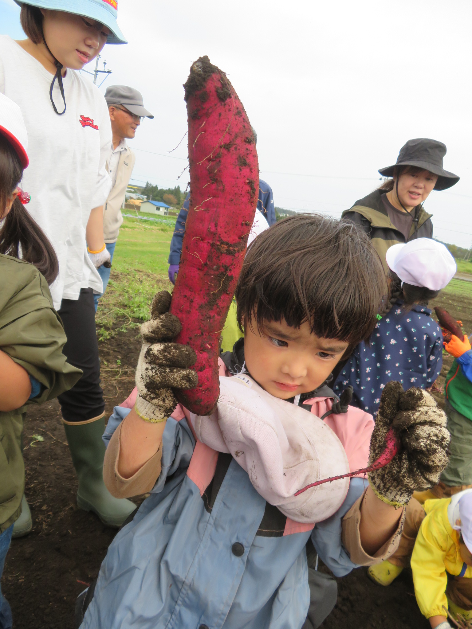 「見て見て~!このお芋なが~い!(≧▽≦)」