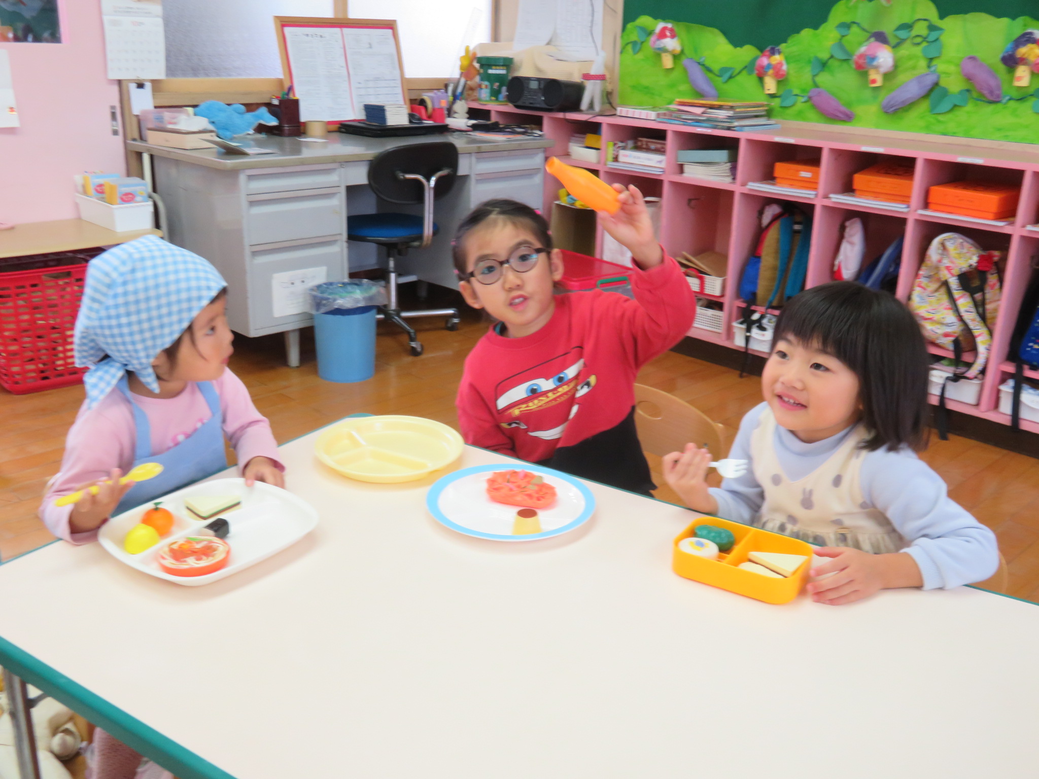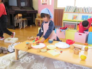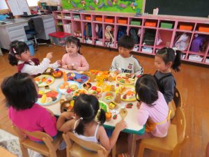 ままごとコーナーでは、豪華なメニューでパーティーの真っ最中!