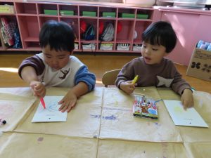 午後は、献金袋にお絵描きをしました🖍