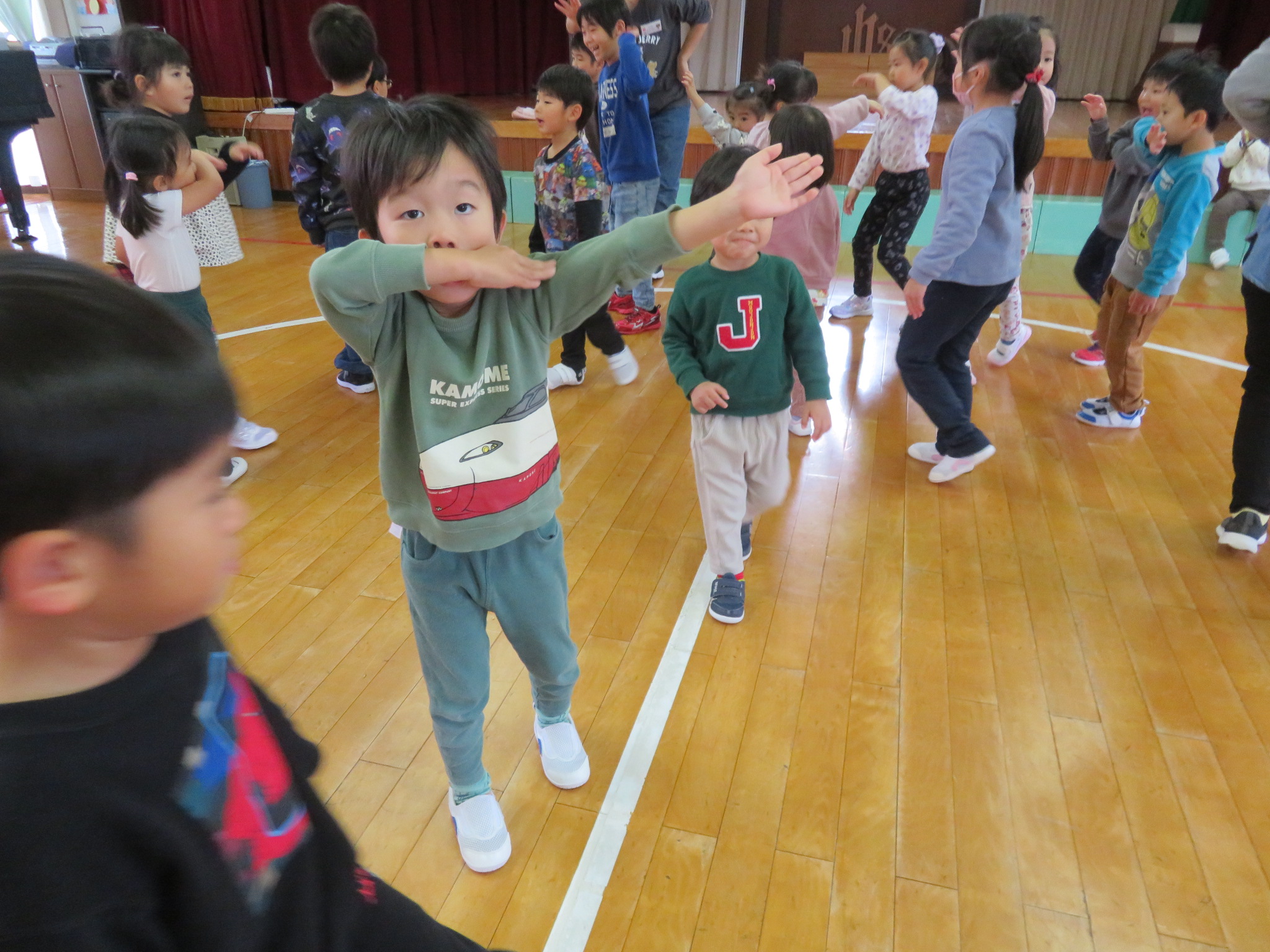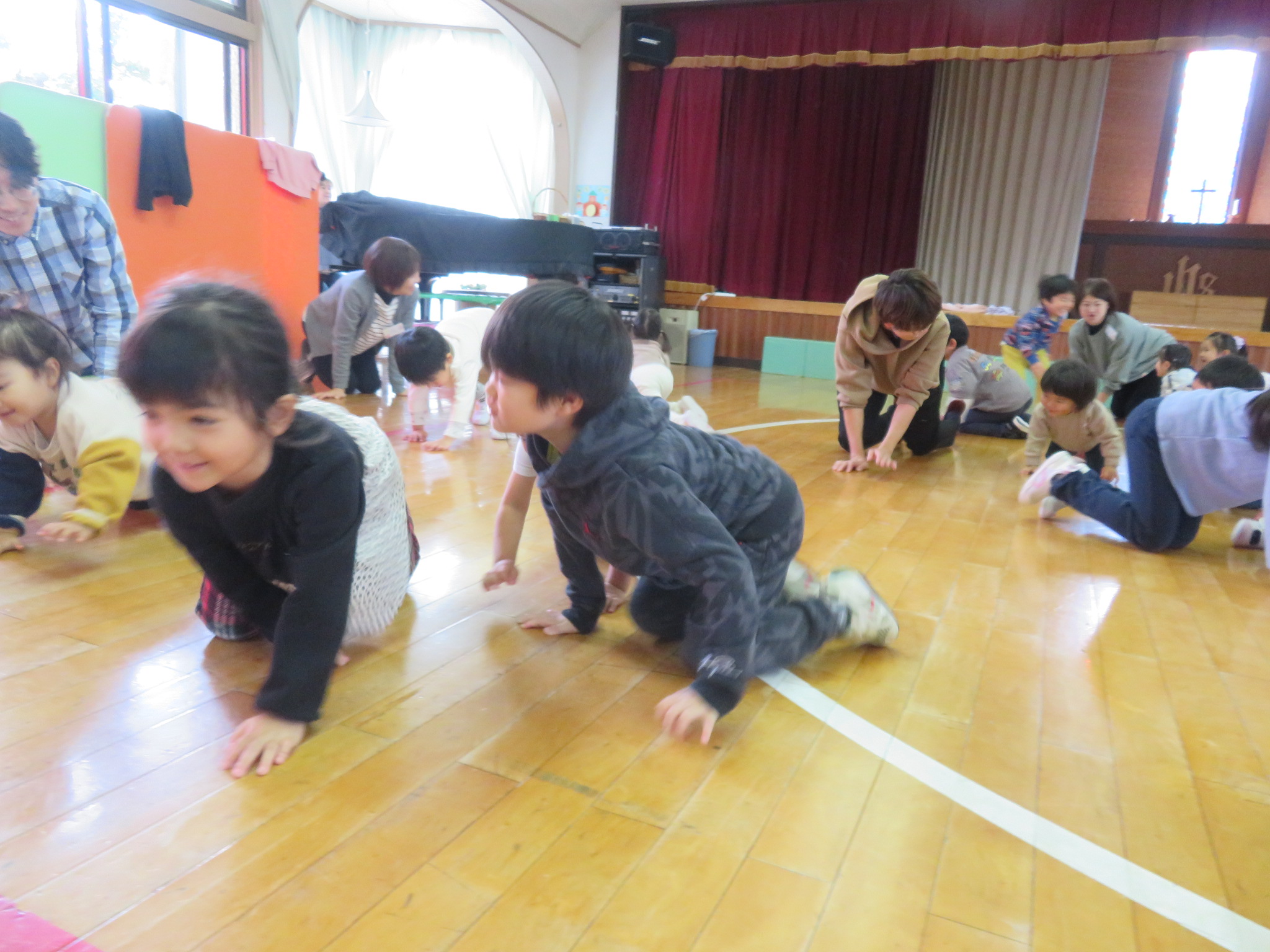 ピアノの音に合わせて、みんなで体を動かしちゃおう(^^♪